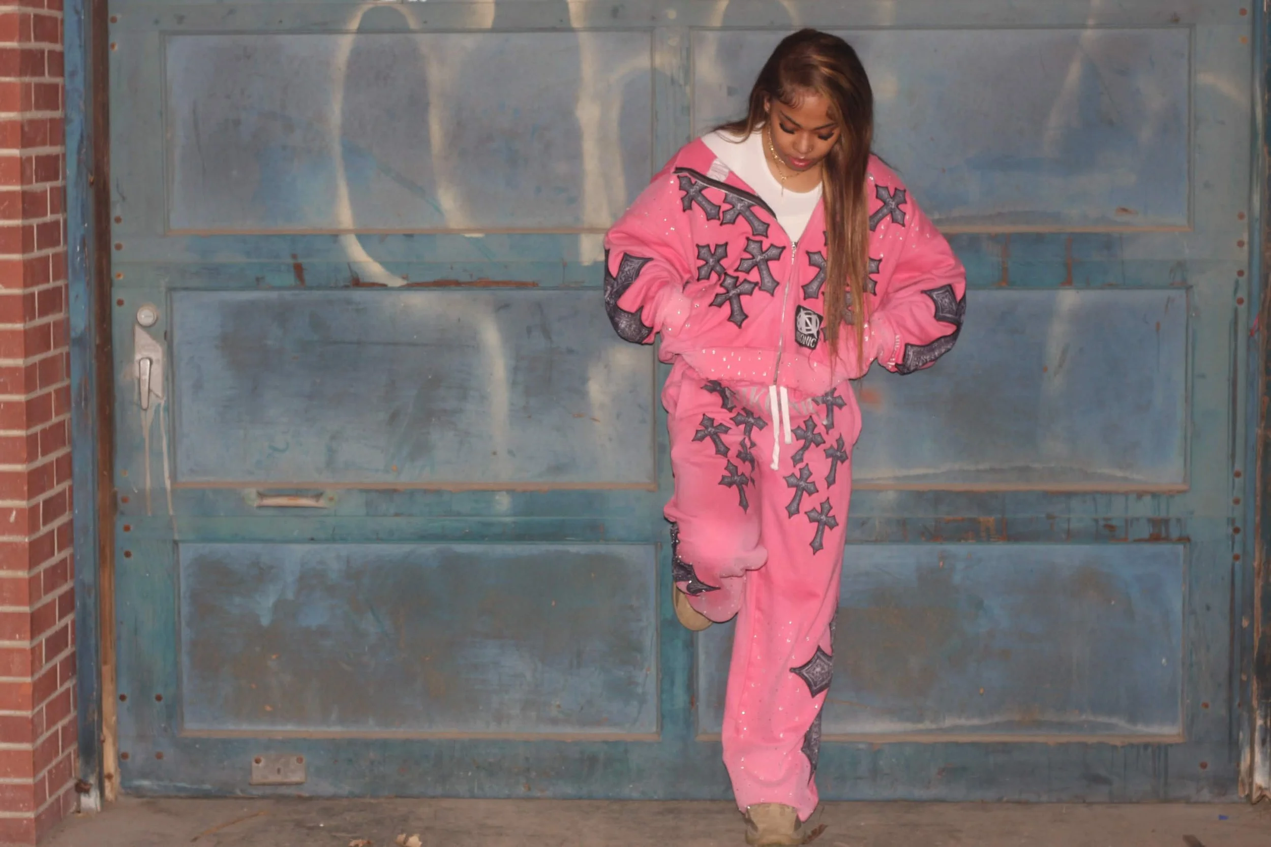 Streetwear grit meets premium comfort. These Pink sweatpants feature a relaxed, baggy fit and heavy-duty fabric built to last. Defined by intricate cross embroidery, they offer an elevated silhouette for those who don’t do basic.